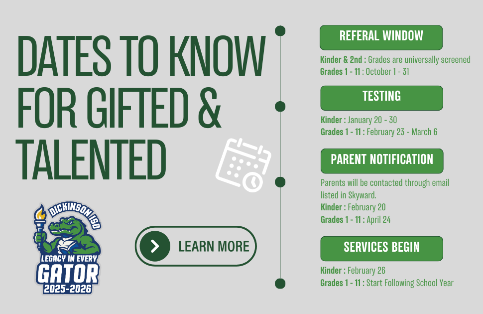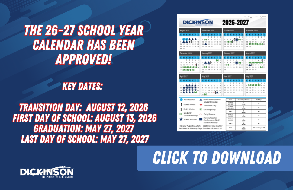 We’re not like every other K-12 school district. Inclusive of all, Dickinson ISD will cultivate excellence, producing confident, collaborative, goal-driven learners who become empowered citizens in a global society. See what makes us great.